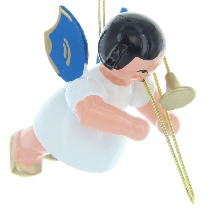 Schwebeengel mit Posaune, blaue Flügel - 199/062/005B